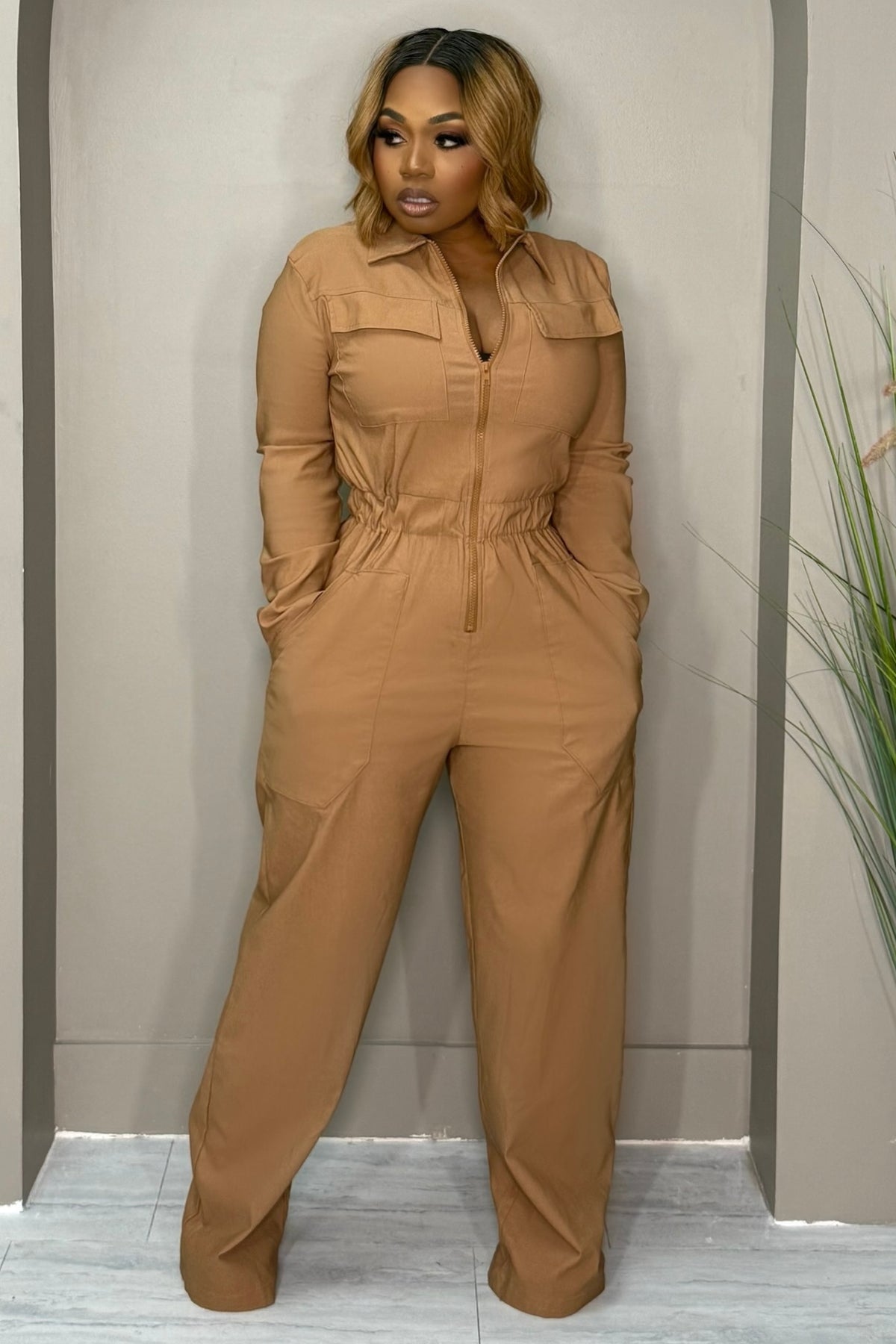 LONG SLEEVE WIDE LEG CARGO JUMPSUIT