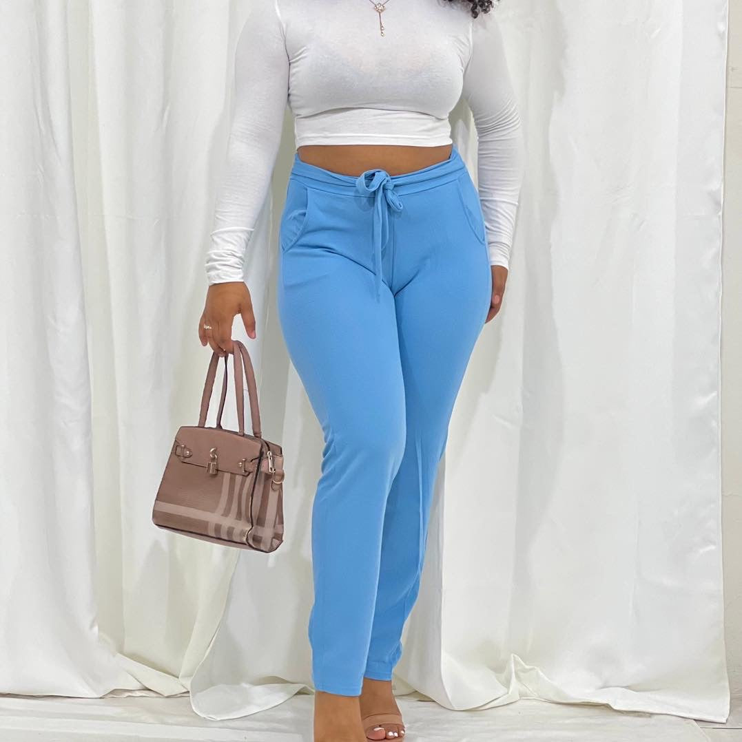 CRINKLED TIE FRONT OFFICE PANTS