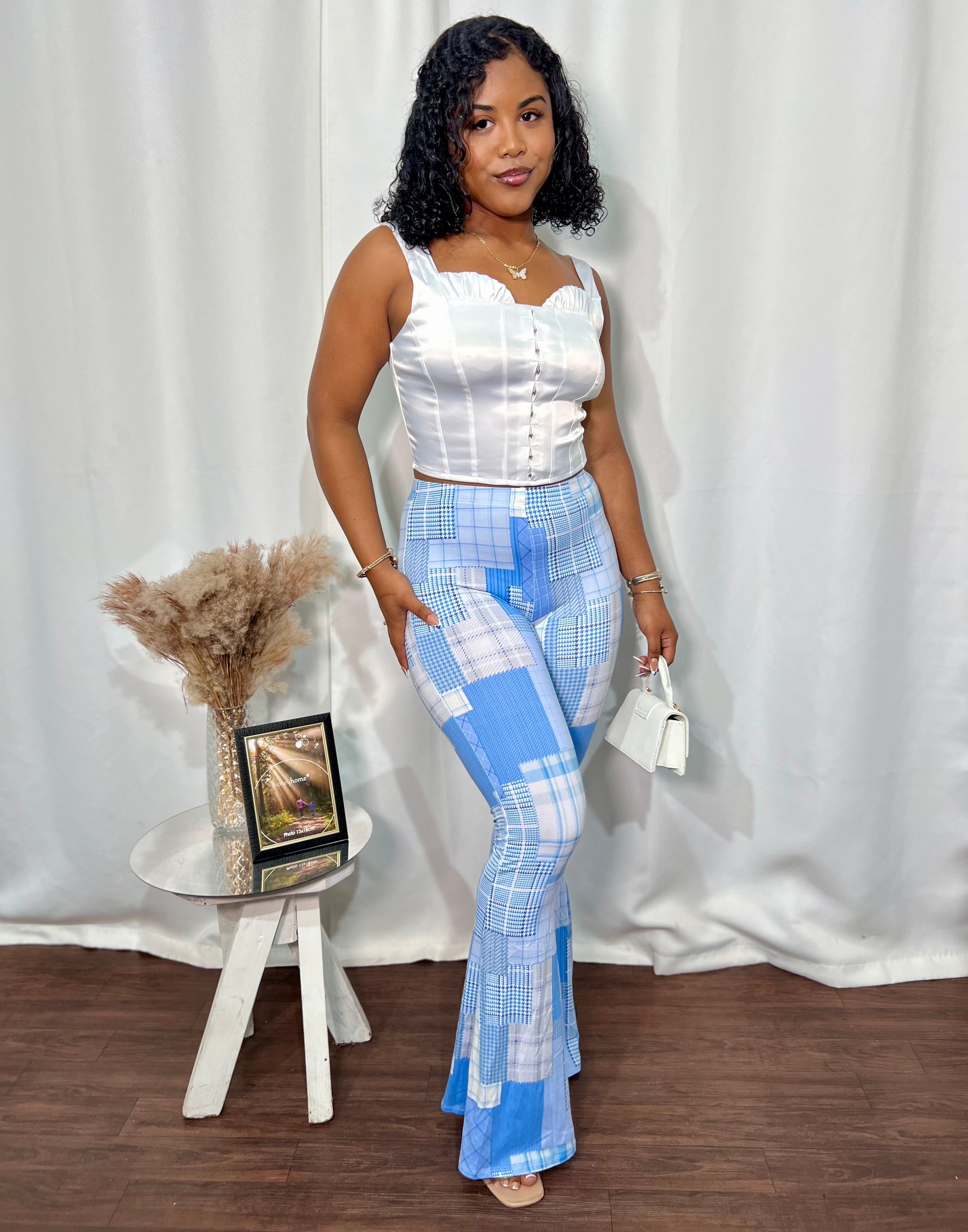 PRINTED CHECKERED PRINT PALAZZO PANTS